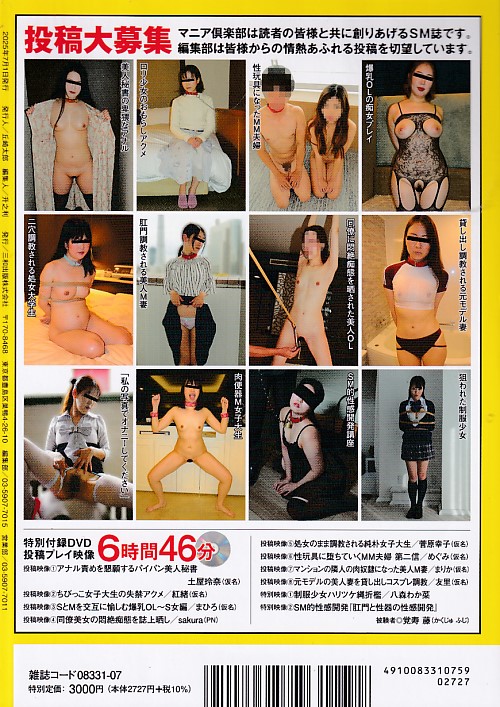マニア倶楽部(通巻356号) マニア倶楽部(通巻356号)(YA-11) (s14891) 表示価格より20% OFF 作者:-出版社:三和出版サイズ:A5出版日:R7.7.1–詳細:DVD付(6時間46分)。実体験告白誌。八森わか菜(カバー&グラビア)、土屋玲奈、紅緒、菅原幸子、まひろ、重美、友里、宏一&めぐみ夫妻、肉便器見習いサセ子、sakura、まりか、覚寿藤、他。程度:上/状態:-ゾッキ(問屋から仕入れている新古本ですが、当店では状態のよい古本という意味です。決して未読・新品として販売しているものではございません。)登録日:R7.10.31 在庫状態 : 在庫僅少 ¥3,000 ¥1,500(税込) 数量冊